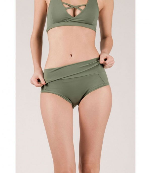 ad esempio, rende possibile risvoltare la parte alta, nel caso serva la presa della pelle del fianco, allo stesso tempo quando non serve scoprire la parte alta dello short, il capo, sempre senza lasciare segni, grazie al tubolare foderato e morbido elasticizzato, si rialza per continuare nelle prese di gamba che, come vedete in questo pantaloncino sono possibili, grazie alla leggera sgambatura inclinata sulla coscia.
